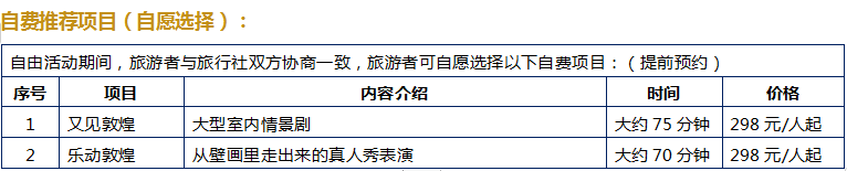 - 鳴沙山自費項目較多,請盡量選擇安全性較高的項目參加;
